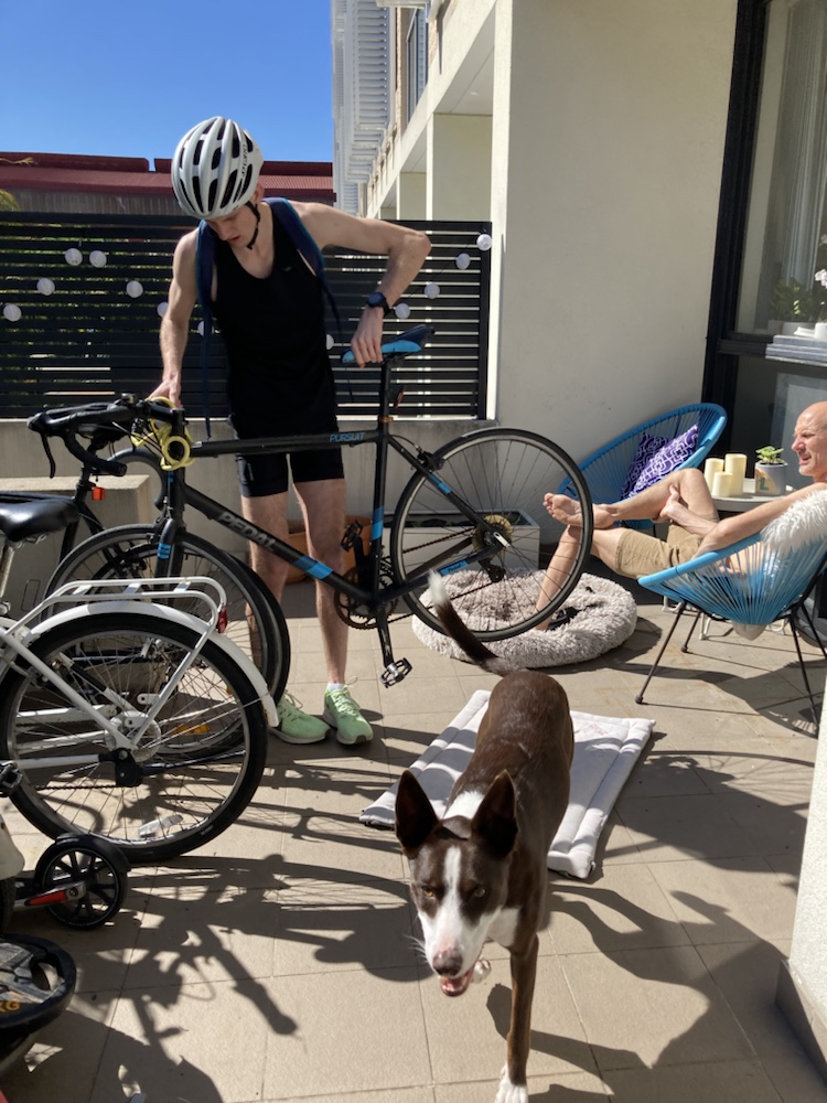 Aktiv morgon som vanligt. Vi var ute först och åt sen frukost och såg på Sveriges starkaste familj. Sen avlöste Eric oss och körde 13 km löpning i parken med cykling dit och hem. Sen bakade jag bröd, fixade för lunchen och gjorde lite annat smått och gott medan Micke skruvade ihop lite saker jag bett om.