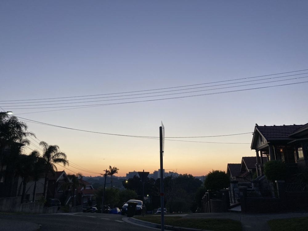 Promenaden imorse var skön men hela Sydney låg som i en dimma pga skogsbrand.