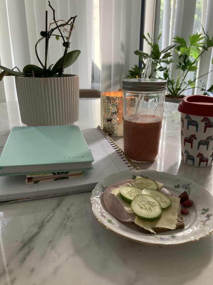 Frukost och planering för jobb och hur veckan ser ut. Vi är är ju rejält påverkade av hur covid kommer spela in med många sjuka men man kan ju låtsas att man kan planera och njuta av det.