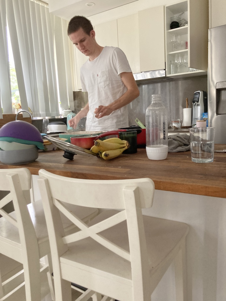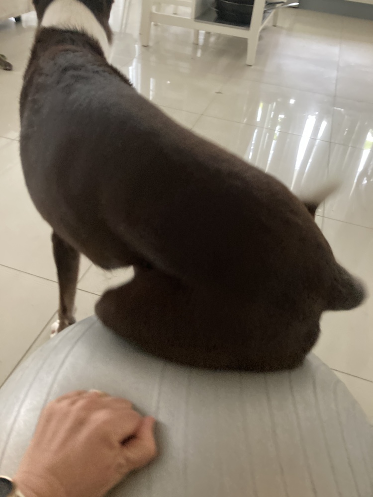 Imorse kunde vi faktiskt springa hela tiden så vi börjar ju piggna till. Eric är äntligen klar med alla saker på universitetet som stressat honom de sista veckorna så idag kom han ut från sitt rum och lagade en lasagne Försöker träna men har en Sven som måste sitta på bollen för att få vara nära mig. Gulligt men irriterande.