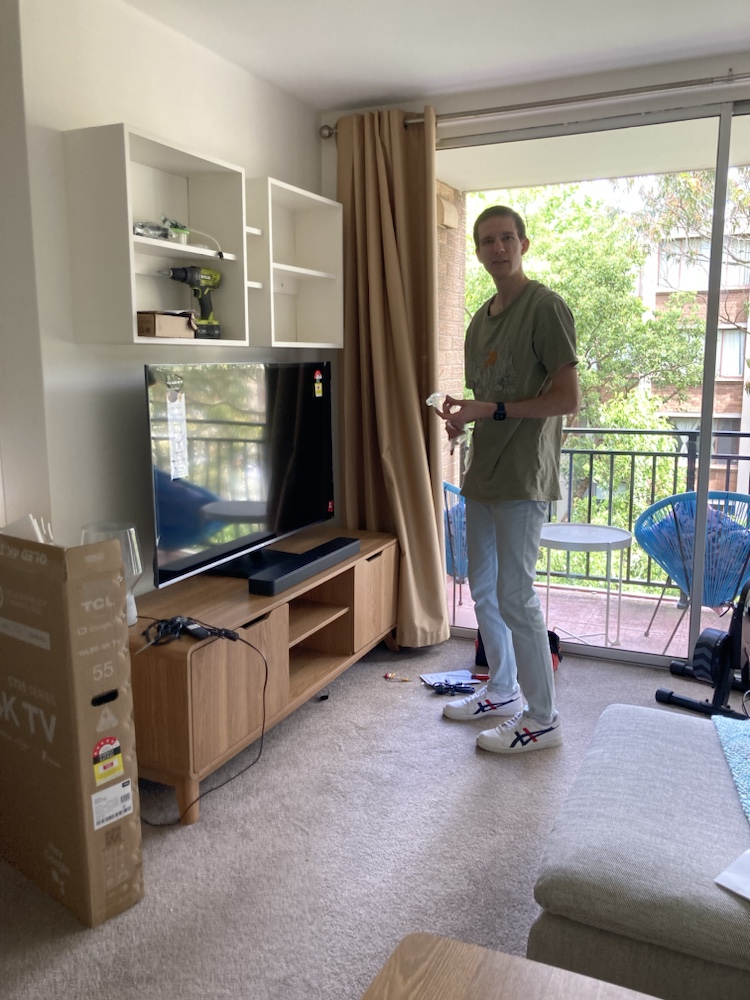 Idag har jag fortsatt att hjälpa Eric med sin lägenhet. Allt tar ju sin tid när man i princip jobbar heltid och pluggar på heltid. Idag ville han köpa en tv och då följde jag med då han ju inte har bil. Vi passade också på att handla mera mat och hjälpas åt lite hemma hos honom. Han trivs så bra och är så glad över sitt eget hem