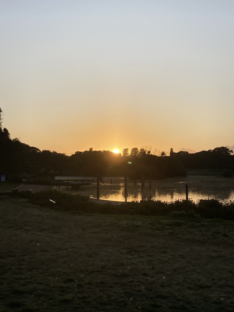 Vi delade upp oss på morgonen. Snabb hund plus snabb löpare och i den andra gruppen långsam hund plus långsam löpare. De långsamma njöt av denna soluppgång.
