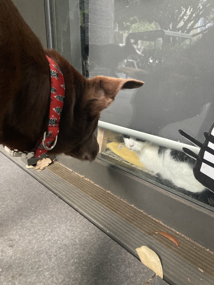 Emmie saknar ju penny. Vad är livet utan en katt liksom. Som tur är så har de ett kattcafe precis vid Mickes jobb så där spanar vi på katter ibland. Imorse fick hon kolla på en katt som ser ut som penny. Lycka.