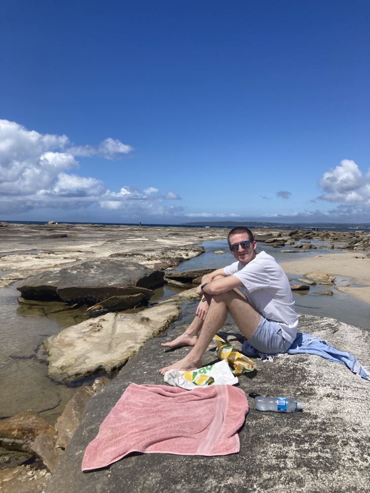 Promenad längs med havet. Vi såg två stora filmer som spelades in. En var andra filmen i Mad Max.
